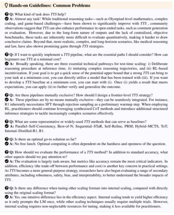 文献解析:通过结构化分析方法,清晰界定各项研究的创新边界与价值定位; 1. 路径提炼:总结出推理阶段扩展技术的三大发展方向:计算资源动态优化、推理过程增强和多模态任务适配; 1. 实践指导:针对数学推理、开放问答等典型场景,提供具体可操作的技术选型建议; 1. 开放社区:抛弃传统调研自说自话的特点,通过结合主页希望营造一个专门为 TTS 讨论的开放社区,集所有研究者的智慧,不断与时俱进更新更加实践的指导。