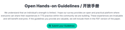 操作指南:另一个潜在的亮点是持续收集 TTS 开发中的实用操作指南,而这些操作指南将以问答的形式展现。作者期待这些问答是具体的、现实的、一线的,因此,作者期待这篇 Survey 将维持开放性,邀请更多在一线研究的学者来参与这项操作指南的收录和编写。下面是作者现阶段的操作指南的内容和风格。