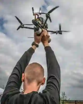 图:2024年,在乌克兰基辅附近的测试中,一名技术人员准备释放一架配备了Auterion软件的无人机。