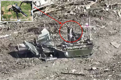 图:装备 AGS-17 30 毫米自动榴弹发射器的俄罗斯 UGV 无人地面车辆。(图片来源:Video Footage 社交网络)