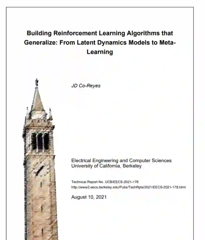 构建能够有效解决各种问题的通用RL算法需要将正确的结构和表示编码到我们的模型中。我们泛化能力的一个关键组成部分是我们开发世界内部模型的能力,该模型可以用于稳健的预测和有效的规划。在本论文中,我们讨论了如何利用表示学习来学习更好的物理场景预测模型,并使agent能够在基于模型的RL框架下通过规划学习到的模型来推广到新的任务。我们将介绍两种能够实现良好泛化的抽象:对象级表示形式的状态抽象和分层RL的技能表示形式的时间抽象。通过将这些抽象概念整合到我们的模型中,我们可以在长期、多阶段的问题上实现高效的学习和组合推广。我们还讨论了元学习在自动学习一般RL算法的正确结构中的作用。利用大规模的基于进化的计算,我们可以学习通用的RL算法,这些算法在各种任务中具有更好的样本效率和最终性能。最后,我们将介绍如何使用这些内部模型来计算RL目标本身,并在不设计奖励函数的情况下训练具有复杂行为的一般RL代理。