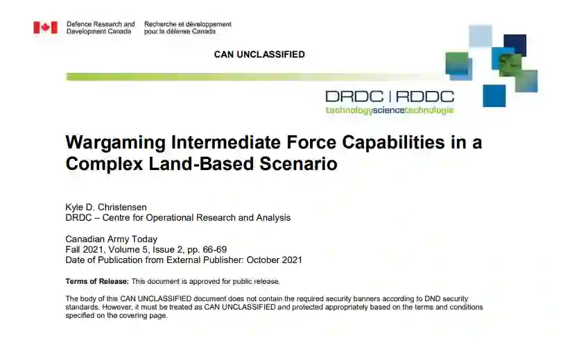 2021年4月13-15日,北约系统分析研究-151(SAS-151)工作组在陆基场景中基于兵棋推演了中间部队能力(IFC)。IFC为任务规划者和作战者提供了在政治不顺利的情况下,在无所作为和使用致命武力之间的响应能力。虽然IFC在概念上类似于非致命性武器(NLW),但它们实际上是在更广泛的战略和理论背景下进行的。它们旨在实现有效的升级/降级控制,并在战术/战役层面产生最大的影响。