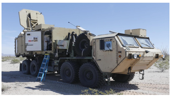 这张照片被认为是公共领域,并已被批准发布。联合非致命武器局(JNLWD)的主动拒绝系统(ADS)在进行反人员演示前被摆放好。图片来源:Andrew Huff 来源:美国国防部联合中级部队能力办公室(JIFCO),非致命性武器项目 https://inlwp.defense.gov/Press-Room/Multimedia/Images/igphoto/2001730427/