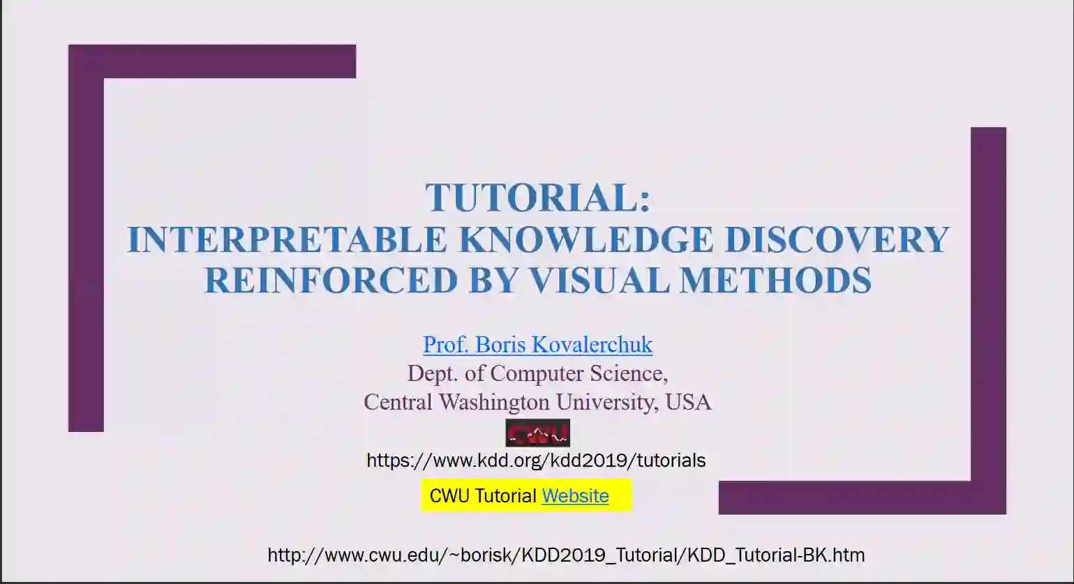 本教程将涵盖知识发现领域的最新研究、开发和应用,通过可视化方法增强知识发现的可解释性,以刺激和促进未来的工作。它将服务于从数据中获取洞察力的KDD任务。这个主题是跨学科的桥梁科学研究和应用社区在知识发现,视觉分析,信息可视化,和人机交互。这是一个新的快速发展的领域,具有重要的应用和潜力。