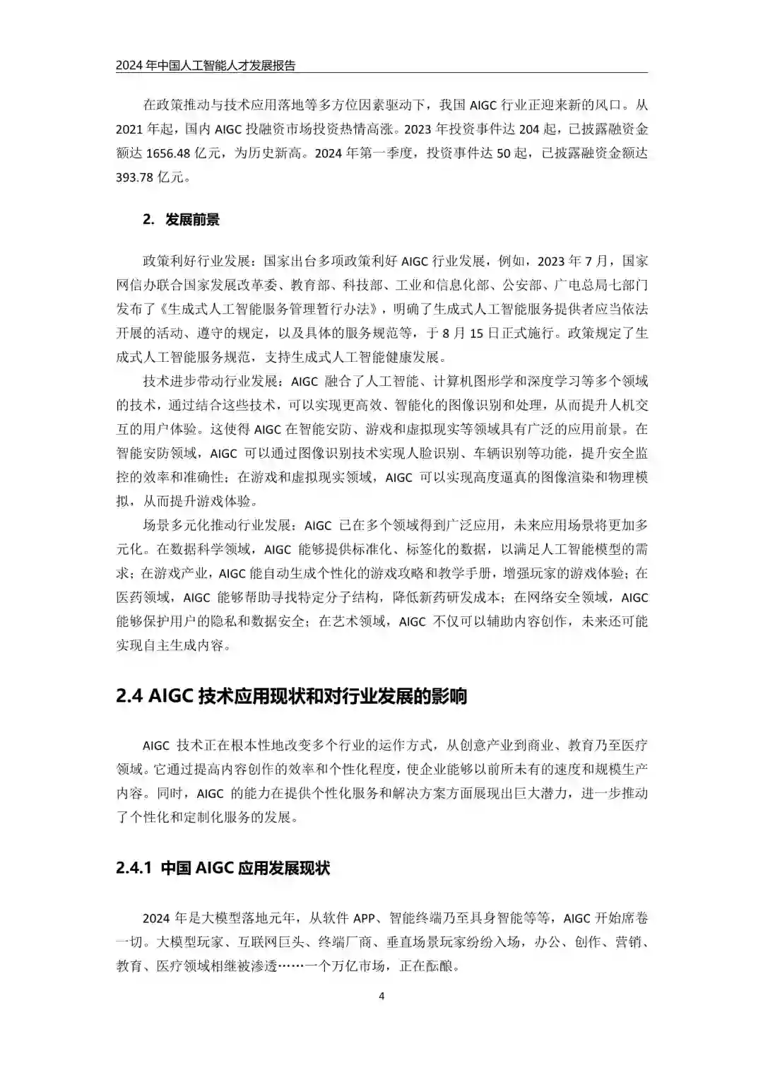 2024年,人工智能(AI)产业发展迅猛,对人才的需求也日益旺盛。本报告分析了2024年人工智能人才的发展现状、需求特点、能力素质要求以及人才培养模式,并提出了相关建议,以期为人工智能人才发展提供参考。 以下为报告节选: