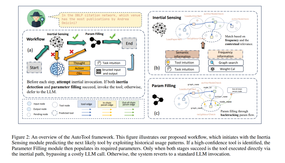 大型语言模型(LLM)智能体凭借其推理与决策能力,已成为自动化复杂任务的强大工具。然而,当前智能体框架的主要瓶颈在于工具选择的高推理成本,尤其是在诸如 ReAct 等方法中,需在每一步反复调用 LLM 来决定使用哪一项工具。为此,本文提出 AutoTool,一种新颖的基于图的框架,通过利用一个关键的经验性观察来绕开重复的 LLM 推理:工具使用惯性(tool usage inertia)——即工具调用往往遵循可预测的序列模式。 AutoTool 从历史智能体轨迹构建有向图,其中节点表示工具,边则刻画工具之间的转移概率,从而有效建模工具选择的这种“惯性”特性。同时,它进一步整合参数层面的信息来优化工具输入的生成。通过遍历这一结构化表示,AutoTool 能够以极少依赖 LLM 推理的方式,高效完成工具及其参数的选择。 在多类智能体任务上的大量实验表明,AutoTool 在保持竞争性任务完成率的同时,将推理成本降低了最高 30%,为推理负载沉重的框架提供了实用且可扩展的增强方案。我们的研究凸显了在 LLM 智能体设计中引入统计结构的潜力,使其在不牺牲性能的前提下进一步提升效率。 代码地址:https://github.com/jiajingyyyyyy/AutoTool
