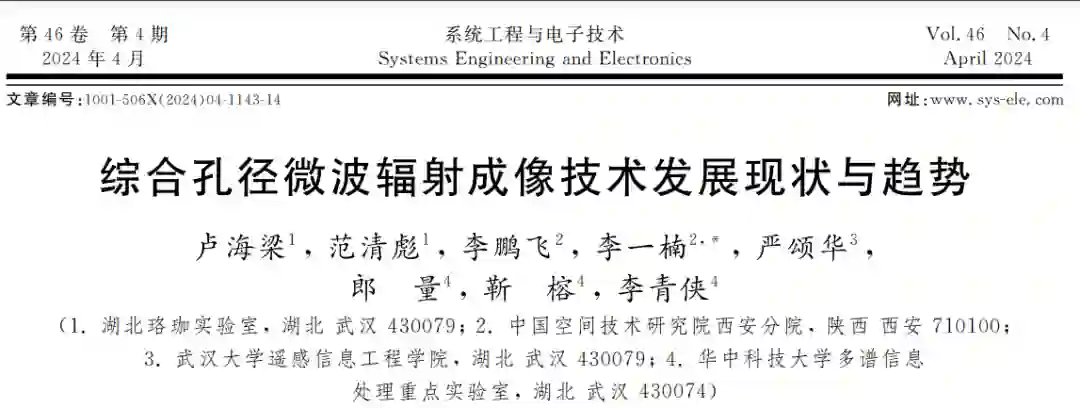 温度高于绝对零度(0K)的物体都会产生非相干电磁 辐射,物体的这种非相干电磁辐射亦称为热辐射[1]。物体 在微波频段的电磁辐射称为微波热辐射,或简称为“微波辐 射”。微波辐射测量技术是利用微波辐射测量设备获得物 体或场景微波辐射强度(亮温),微波辐射测量设备实质上 是一台精确标定后的高灵敏度、高稳定度的微波接收机,也 称为“微波辐射计”[2]。 由于微波辐射计不发射任何信号,也不依赖于其他任 何发射源的信号,并且具有全天时、准全天候(可穿透云层、 浓雾、小雨和烟尘等)的特点[3],可以一定深度穿透地表、植 被以及人体等,可提供可见光、红外和主动雷达等其他手段 不能提供的信息,其在大气海洋陆地遥感、月球与深空探 测、探测制导、安防安检、医疗检测和科学研究等领域有广 泛的应用[45]。但相对于可见光、红外和主动雷达等探测 手段,由于受限于大孔径天线和笨重的机械扫描转台,传 统实孔径微波辐射计的空间分辨较低[4,6]。为提高微波辐 射测量技术的空间分辨率,在20世纪80年代,提出了一 种基于干涉测量的综合孔径微波辐射成像技术,其采用稀 疏的小口径天线阵列合成一个等效的大口径天线,从而提 高空间分辨率,同时可有效降低天线的体积与重量,且无需 机械扫描即可实现对物体或场景的宽视场瞬时成像,从而 为提高微波辐射测量技术的空间分辨率提供了一种可行的 途径[7]。