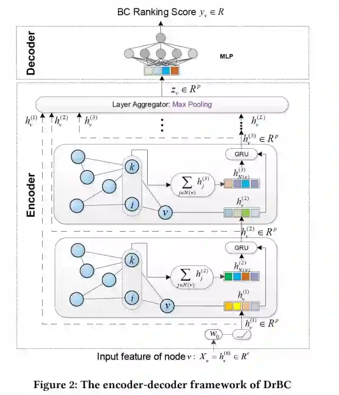 摘要: Betweenness centrality (BC)是网络分析中广泛使用的一种中心性度量,它试图通过最短路径的比例来描述网络中节点的重要性。它是许多有价值的应用的关键,包括社区检测和网络拆除。由于时间复杂度高,在大型网络上计算BC分数在计算上具有挑战性。许多基于采样的近似算法被提出以加速BC的估计。然而,这些方法在大规模网络上仍然需要相当长的运行时间,并且它们的结果对网络的微小扰动都很敏感。 在这篇论文中,我们主要研究如何有效识别图中BC最高的top k节点,这是许多网络应用程序所必须完成的任务。与以往的启发式方法不同,我们将该问题转化为一个学习问题,并设计了一个基于encoder-decoder的框架作为解决方案。具体来说,encoder利用网络结构将每个节点表示为一个嵌入向量,该嵌入向量捕获节点的重要结构信息。decoder将每个嵌入向量转换成一个标量,该标量根据节点的BC来标识节点的相对rank。我们使用pairwise ranking损失来训练模型,以识别节点的BC顺序。通过对小规模网络的训练,该模型能够为较大网络的节点分配相对BC分数,从而识别出高排名的节点。在合成网络和真实世界网络上的实验表明,与现有的baseline相比,我们的模型在没有显著牺牲准确性的情况下大大加快了预测速度,甚至在几个大型真实世界网络的准确性方面超过了最先进的水平。