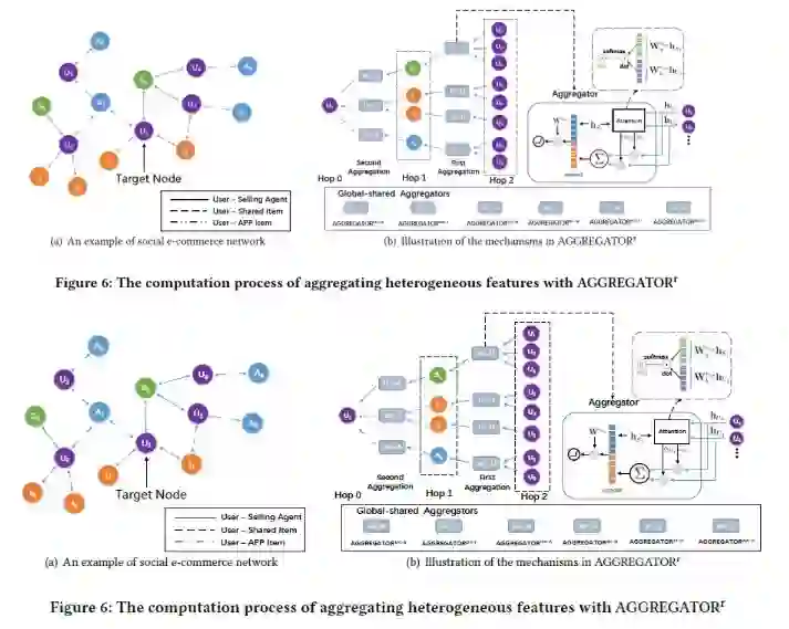 摘要:近年来,agent-initiated社交电子商务模式取得了巨大的成功,这种模式鼓励用户成为销售代理商,通过他们的社交关系来推广商品。这种类型的社交电子商务中的复杂交互可以表述为异构信息网络(HIN),其中三种节点之间的关系有多种类型,分别为用户、销售代理和商品。学习高质量的节点嵌入是研究的重点,图卷积网络(GCNs)是近年来发展起来的最先进的表示学习方法。然而,现有的GCN模型在建模异构关系和有效地从大量邻域中采样相关接收域方面都存在基本的局限性。为了解决这些问题,我们提出了RecoGCN(a RElation-aware CO-attentive GCN model)来有效地聚合HIN中的异构特征。它弥补了目前GCN在使用关系感知聚合器建模异构关系方面的局限性,并利用语义感知元路径为每个节点开辟简洁和相关的接受域。为了有效地融合从不同元路径中学习到的嵌入,我们进一步提出了一种co-attentive机制,通过关注用户、销售代理和商品之间的三种交互来动态地为不同的元路径分配重要性权重。在真实数据集上的大量实验表明,RecoGCN能够学习HIN中有意义的节点嵌入,并且在推荐任务中始终优于baseline方法。