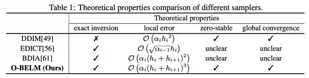 本篇论文已经被NeurIPS 2024接收。第一作者王方懿康是微信视觉团队实习生,同时也是浙江大学一年级硕士研究生。共同一作是微信高级研究员Hubery。通讯作者是浙江大学助理教授张超。其他作者包括来自清华大学的董玥江,来自浙江大学的朱胡旻昊,赵涵斌助理教授和钱徽教授,以及微信基础视觉和视觉生成技术负责人李琛。**随着扩散生成模型的发展,人工智能步入了属于 AIGC 的新纪元。扩散生成模型可以对初始高斯噪声进行逐步去噪而得到高质量的采样。当前,许多应用都涉及扩散模型的反演,即找到一个生成样本对应的初始噪声。当前的采样器不能兼顾反演的准确性和采样的质量。为彻底解决这一问题,微信视觉团队与浙江大学和清华大学联手提出了基于双向显式线性多步法的扩散模型精确反演采样器(BELM)这一通用算法,并通过截断误差分析确定了最优的 BELM 采样器系数。此方法在确保精确反演的同时还提升了生成样本的质量,在图像与视频的编辑、插值等下游任务中有广泛的应用前景。这一研究成果已被 NeurIPS 2024 会议接收。当前,扩散模型在图像生成、文字生成、音频生成等多个领域得到了广泛应用,表现出了卓越的性能。扩散模型的反演操作,即找到一个生成样本对应的初始噪声,对若干下游任务起到关键的作用。传统的 DDIM 反演会造成严重的不一致问题,即原始图片加噪再去噪的结果与原图相差甚远。近期,研究者们提出了多种启发式的精确反演采样器来解决 DDIM 反演的不一致问题。然而,这些启发式的精确反演采样器的理论特性尚不明确,且采样质量常常不尽如人意,这在一定程度上限制了它们的应用。为此,本研究引入了一种通用的精确反演采样器范式 —— 双向显式线性多步(BELM)采样器,该范式包含了上文提到的启发式精确反演采样器。该团队在 BELM 范式内系统地研究了局部截断误差(LTE),发现现有的精确反演采样器的 LTE 并非最优。因此,研究团队通过 LTE 最小化方法提出了最优的 BELM(Optimal-BELM,O-BELM)采样器。实验表明,O-BELM 采样器在实现精确反演的同时,也提升了采样的质量。