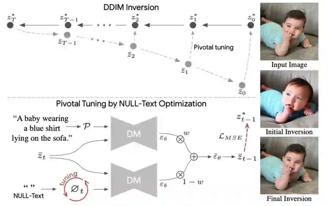 现有精确反演方法****Null-text-inversion以 Null-tex-inversion 为代表的方法对 unconditional 占位符进行 fine-tune,以达到精确反演。问题:这类方法局限于 text-classifier-free-guidance 场景下的扩散模型;需要额外训练,低效。 **
