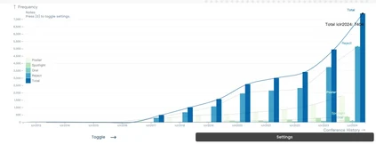 本届会议共收到了 7262 篇提交论文,接收 2260 篇,整体接收率约为 31%,与去年持平(31.8%)。此外 Spotlights 论文比例为 5%,Oral 论文比例为 1.2%。