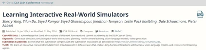 论文地址:https://openreview.net/forum?id=sFyTZEqmUY * 机构:UC 伯克利、 Google DeepMind 、 MIT 、阿尔伯塔大学 * 作者:Sherry Yang、 Yilun Du 、 Kamyar Ghasemipour、Jonathan Tompson、Leslie Kaelbling、Dale Schuurmans、Pieter Abbeel