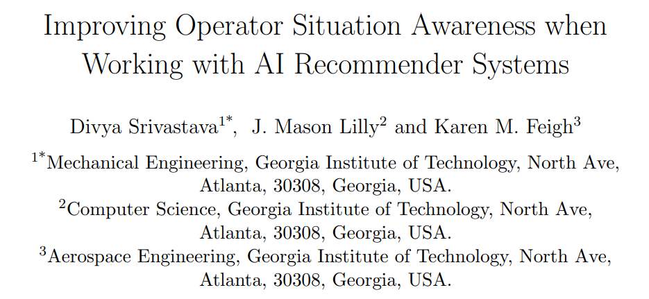 人工智能推荐系统通过向负责做出最终决策的操作人员提供建议,从而为决策支持提供帮助。然而,这些系统通常被认为是黑盒,在展示时往往没有任何背景或对底层算法的深入了解。因此,推荐系统可能会导致用户依赖性误判和态势感知能力下降。近期的工作主要集中在通过各种方式提高推荐系统的透明度,如改进推荐器对优点数字的分析和可视化,提供推荐器决策的解释,以及改进用户培训或校准用户信任度。在本文中,引入了另一种透明度技术,即调整向人类操作员展示上下文信息和推荐决策的顺序。这种技术旨在提高操作员的态势感知,从而提高操作员与推荐系统之间的共享态势感知。