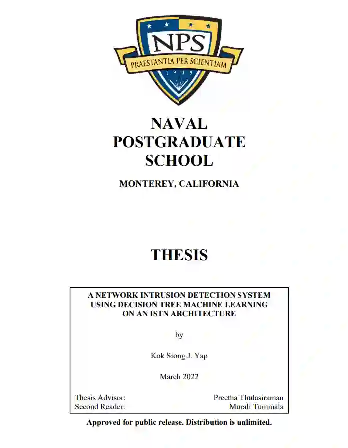 近年来,美海军对无人系统的综合卫星-地面网络(ISTN)架构表现出兴趣。随着卫星网络的发展和越来越多的无人系统网络的连接,安全和隐私是ISTN的主要问题。在这篇论文中,我们专门为ISTN开发了一个网络入侵检测系统(NIDS)。我们确定了NIDS在ISTN架构中的关键位置,并使用决策树机器学习算法对各种威胁载体进行网络攻击检测,包括分布式拒绝服务。决策树算法被用来对攻击流量和良性流量进行分类和隔离。我们使用文献中提供的开放源ISTN数据集来训练我们的算法。决策树使用不同的分割标准,不同的分割数量,以及使用主成分分析(PCA)来实现。我们操纵训练数据的大小和数据特征的数量以达到合理的假阳性率。我们表明,我们基于决策树学习的NIDS框架可以有效地检测和隔离不同的攻击数据类别。