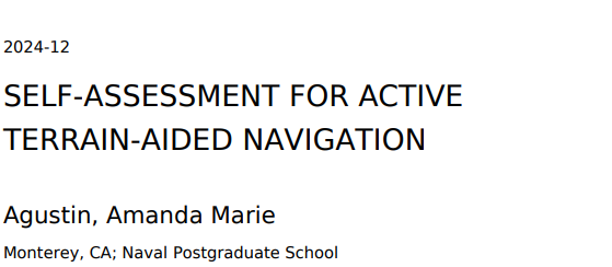 无人系统正在达到一个水平,美国海军(USN)正在改变作战方式,将有人无人协同作战纳入其中。要使这些团队发挥有效作用,需要有一种团队所有成员都能理解的信息沟通方式。预期性能的统一量化可通过三阶段信息理论自评估框架来实现:任务前、任务中和任务后。该框架可应用于任何包含工厂、传感器模型、位置估算器、地图估算器和路径规划器的自动驾驶模型。本文的重点是使用主动地形辅助导航(ATAN)在自主潜航器(AUV)上实施任务前阶段。ATAN 使用的动态路径规划算法(也称为部分可观测蒙特卡洛规划(POMCP)过程)经过修订,利用共享信息论指标库尔贝克-莱布勒发散(KLD)来量化奖励。任务前分析旨在了解算法参数与环境信息之间的关系。本论文的结果验证了信息论自我评估的方法。自我评估可以在任务前、任务中和任务后评估并明确传达其预期性能,从而提高自主模型的可靠性和有效性。