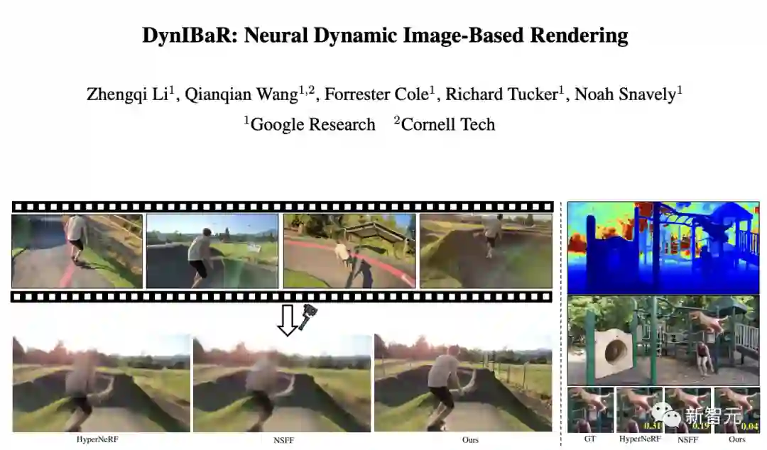 谷歌和康奈尔大学提出新的方法DynIBaR,通过采用基于volumetric的图像渲染框架,在场景运动感知的方式下,通过聚合附近视角的特征来合成新视角。