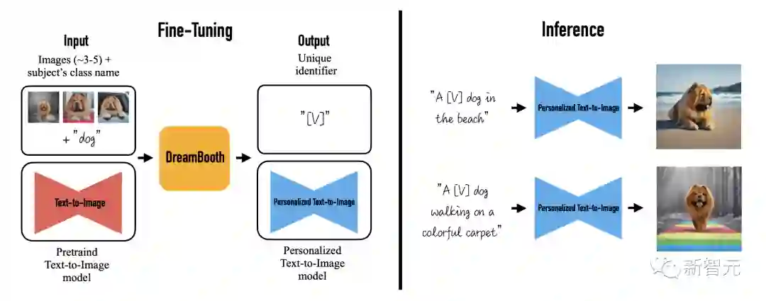 为此,研究人员提出了一种用稀有token标识符表示给定主题的方法,并微调了一个预训练、基于扩散的T2I框架,该框架分两步运行: