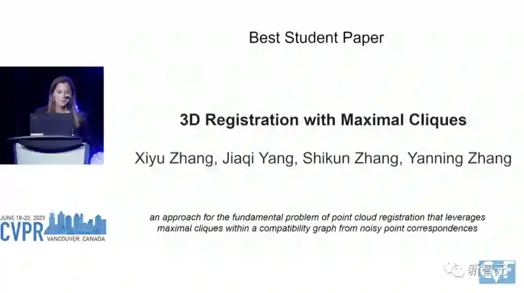 今年的「最佳学生论文」颁给了西北工业大学的「3D Registration with Maximal Cliques」。