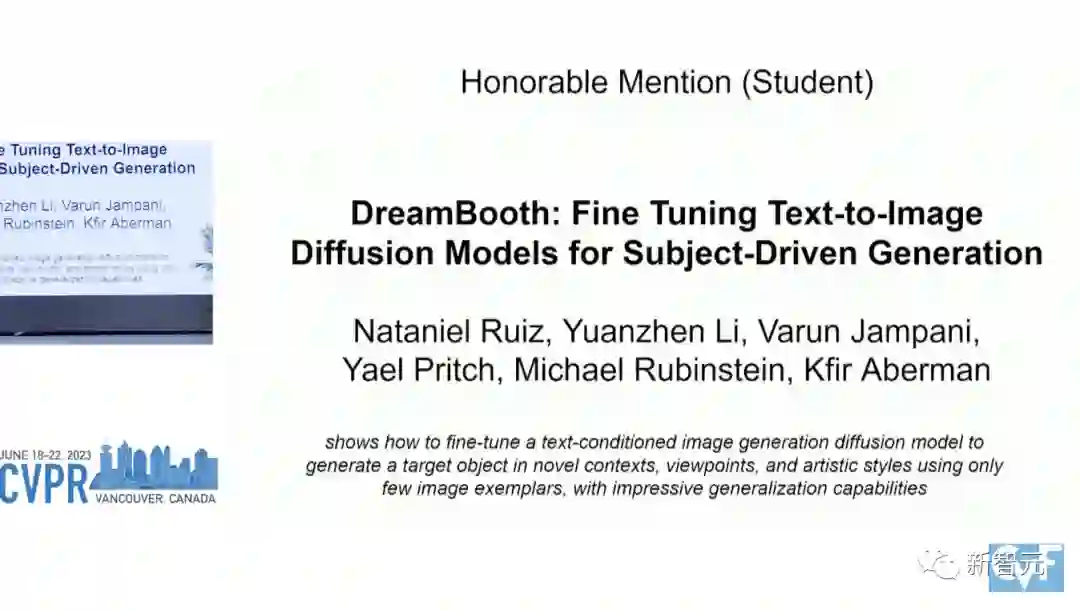 而去年由谷歌推出,并风靡AI圈的扩散模型Dreambooth,则获得了本届最佳学生论文提名。
