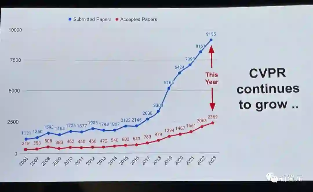 CVPR收到了创纪录的9155份论文(比CVPR2022增加了12%),并录用了2360篇论文,接收率为25.78%。