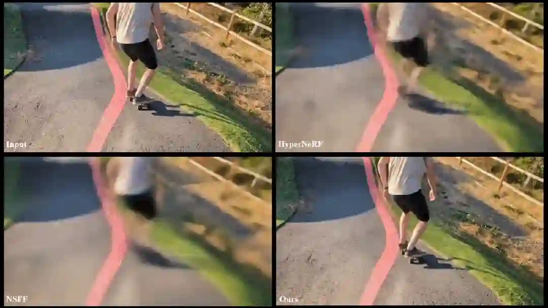 以往,对于具有复杂物体运动和不受控制的摄像机轨迹的长视频,基于动态神经辐射场(即动态NeRF)的方法会产生模糊或不准确的渲染结果。