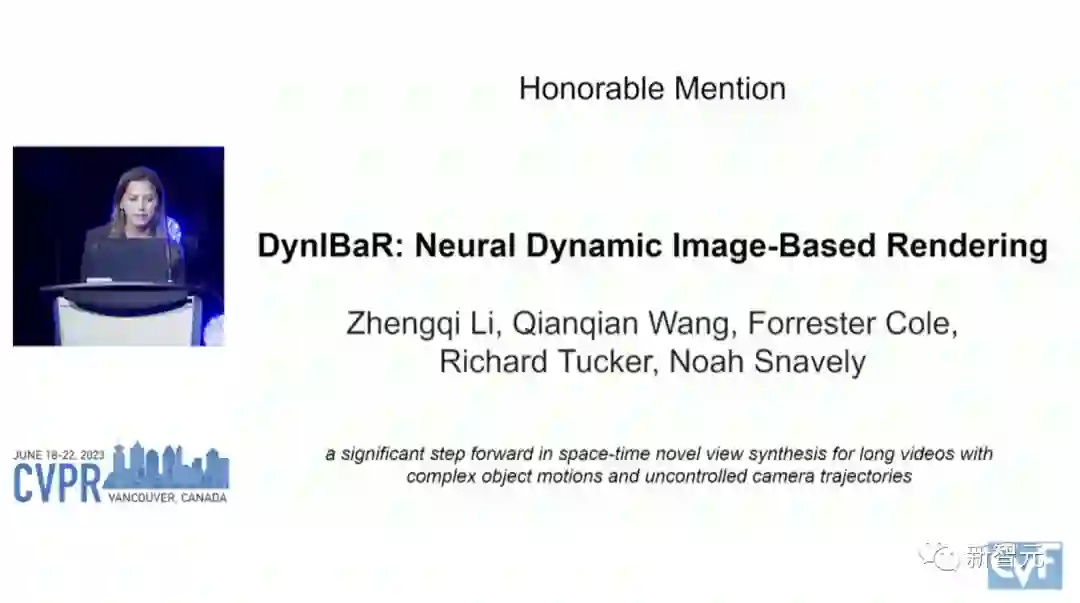 「最佳论文提名」颁给来自谷歌和康奈尔大学的「DynIBaR: Neural Dynamic Image-Based Rendering」。