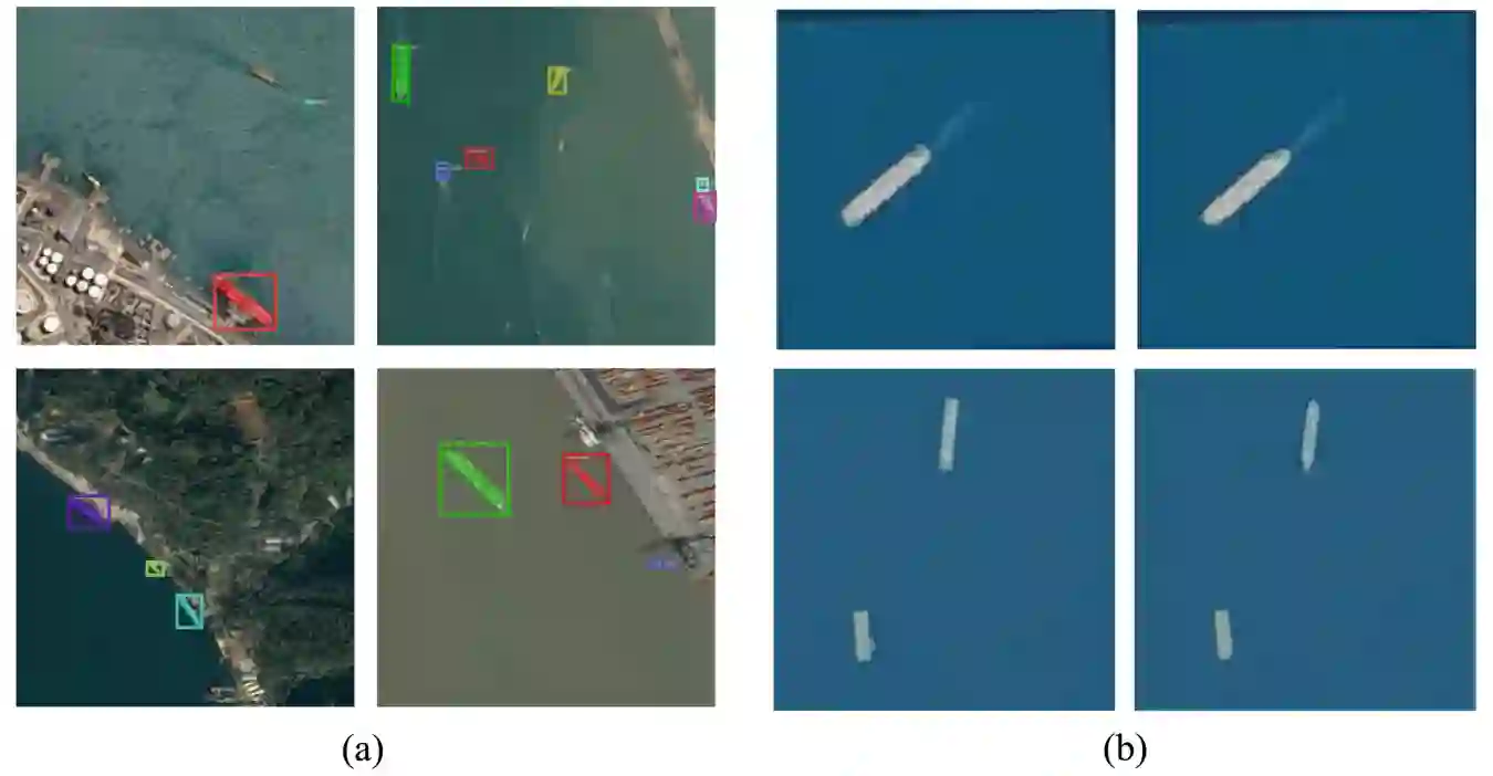 随着收集地球图像的天基传感器的激增,需要开发先进的人工智能和成像技术来提取船舶特征和身份,以提高监控能力。特别是,与许多其他科学领域类似,用于从卫星图像中检测和分割特定目标的深度神经网络(DNN)技术最近受到越来越多的关注。例如,先进的人工智能和 DNN 技术可以通过对船只进行检测、分割、分类和识别,通过估算船只尺寸和航向,以及通过提供地理坐标和时间戳,为任何卫星图像制作 "数字报告"。图 1 显示了两个卫星图像的例子,每个被探测到的船只都有一份数字报告。