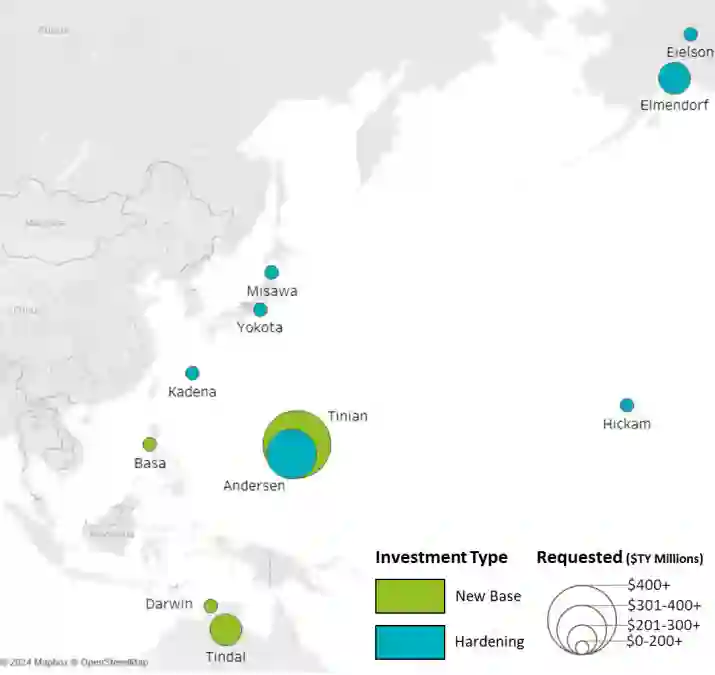 太平洋空军司令部(PACAF)约70%的军事建设资金用于加固现有设施或新建基地。