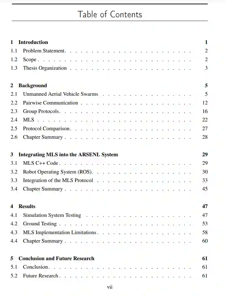MLS提供了一些与多无人机系统特别相关的能力。MLS提供了一个动态添加和删除成员的机制,同时不断地在群组成员之间提供安全的通信。由于无人机群成员可能是高度动态的,添加和删除群成员是很重要的能力。随着蜂群规模的增加,群体安全协议必须有效地扩展。同样有利的是,MLS协议有利于强制移除已经被劫持的、被破坏的或发生故障的无人机。在这些情况下,该协议为小组提供了更新通信密钥的手段,以排除被破坏或故障的无人机。本论文旨在解决以下问题: