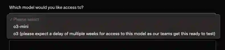 Mark Chen 表示,OpenAI 已经做了大量内部安全测试,而现在他们正在推进外部安全测试。从即日起,想要参与的测试者可以申请测试 o3-mini,至于 o3,就连测试员也还得继续等待。 早期访问申请现已在 OpenAI 网站上开放,并将于 2025 年 1 月 10 日关闭。 申请地址:https://openai.com/index/early-access-for-safety-testing/ 申请者必须填写一份在线表格,表格中会要求他们提供各种不同的信息,包括之前发表的论文链接及其在 Github 上的代码库,并选择他们希望测试的模型(o3 或 o3-mini)以及计划使用它们做什么。 选定的研究人员将被授予访问 o3 和 o3-mini 的权限,以探索它们的能力并为安全评估做出贡献,不过 OpenAI 的表格提示称,o3 将在几周内无法使用。