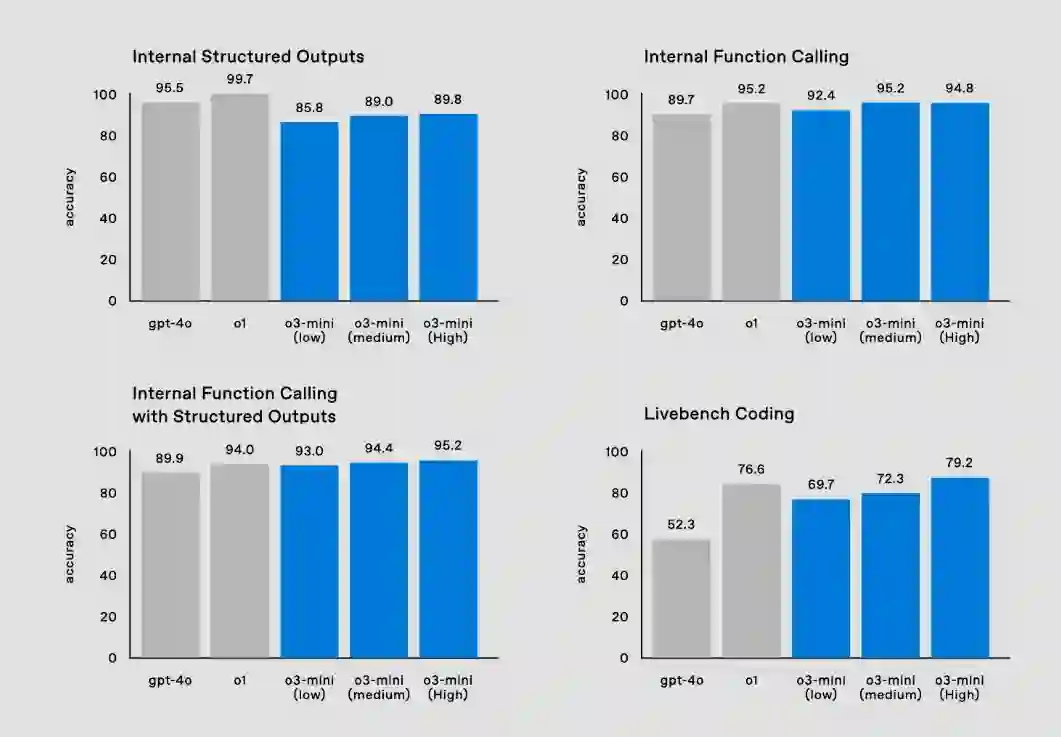 o3-mini 上所有的 API 特性以及相应的能力表现如下:
