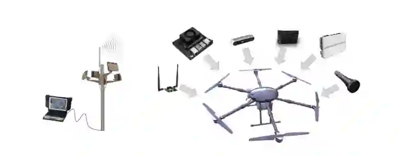 图 1:地面探测与控制站(左)和拦截无人机系统(右)的硬件组件[产品图片来自相关制造商]。