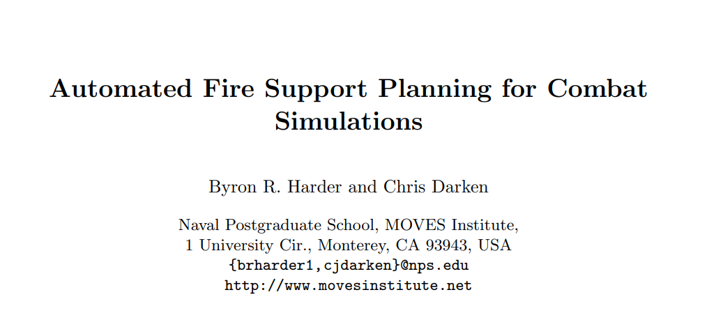 我们用单元(unit)这个词来指任何由一个或多个模拟战斗人员组成的团体,他们作为一个单一的编队一起移动和战斗。一个单元的移动是按照路线进行的,而路线是由一系列的航点或三维空间中的位置定义的。单元沿着地表以现实的、已知地形类型的速度向他们的下一个节点直线行进。在这个问题上,有任务的机动部队的路线是预先确定的和固定的。没有任务的机动部队被认为是火力支援部队。