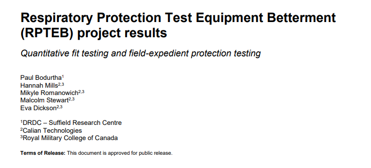 加拿大武装部队(CAF)正在寻求对其 2000 年代初首次引入的化学、生物、辐射和核(CBRN)呼吸器定量密合度测试(QNFT)方法进行现代化改造。虽然这种方法很实用,但在后勤方面却很繁琐,当大批人员在部署前在国内进行密合度测试,密合度测试团队定期锻炼技能和测试设备时,这种方法最有效。不过,有时也需要在实地或在目前不具备这种能力的地点对单个人员进行体能测试。此外,最好能将呼吸器的发放与密合度测试过程结合起来,因为目前是先发放呼吸器,然后用于培训,如果在密合度测试中发现尺寸不正确,就必须更换。因此,目前正在研究一种新的、占用空间较小的方法,可在发放呼吸器时使用,以适应流程的改进。