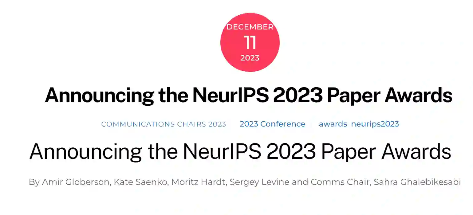 我们很荣幸地宣布2023年NeurIPS的获奖论文!今年的重要奖项包括历史试验奖和以下三个类别中每个类别的两篇杰出论文奖: