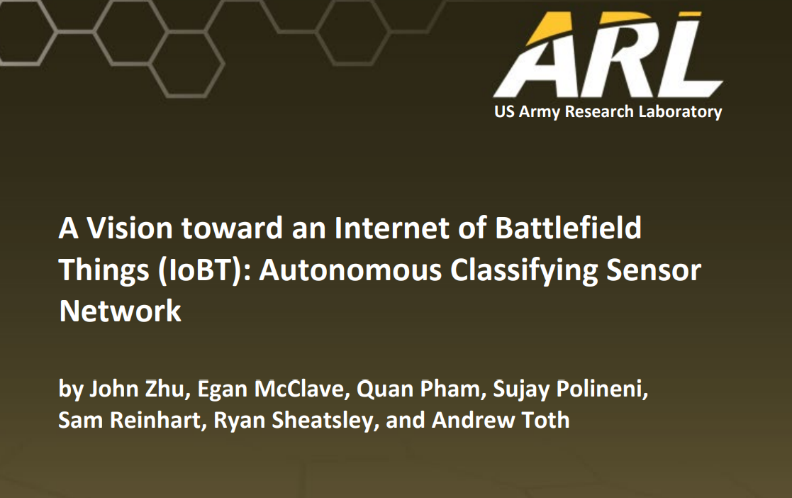 战场物联网(IoBT)的重点是利用传感器、执行器和分析设备的互联网络提供战场态势感知。传感器可以探测敌人的动向,然后将信息实时传递给分析人员,使他们能够就定位、应避免的区域或谁正在穿越某一区域做出战术决策。这种能力将有可能节省资源和士兵的生命,因此物联网成为美国陆军研究实验室(ARL)网络科学研究实验室研究的重要课题。物联网(IoT)的概念是与任何类型的设备(从汽车到冰箱)建立通信网络。将这一概念转换到战场环境中,可以想象 IoBT 能带来多大的可能性。陆军对 IoBT 设备产生了浓厚的兴趣,希望学习、开发并将这些理念从实验室带到战场。