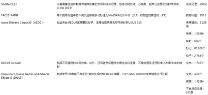 医学实体关系抽取较常用的数据集主要有以下几种,见表3。