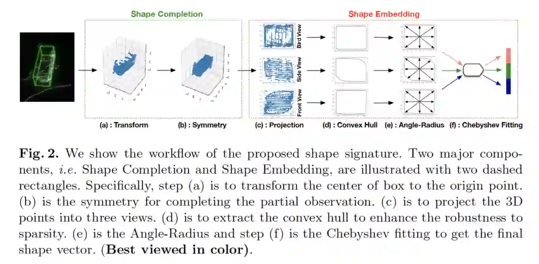 摘要:多类别3D目标检测的目标是对点云中的多类别目标进行定位和分类。由于点云的非结构化、稀疏性和噪声等特性,一些有利于多类别区分的特征没有得到充分利用,例如形状信息。本文提出了一种新的3D形状特征来探索点云中的形状信息。通过引入对称、凸包(convex hull)和切比雪夫拟合等操作,我们所提出的形状特征不仅紧凑有效,而且对噪声具有较强的鲁棒性,可以作为一个软约束来提高特征的多类别区分能力。基于提出的形状特征,我们开发了用于3D目标检测的形状特征网络(SSN),该网络由金字塔特征编码部分,形状感知分组头(shape-aware grouping heads)和显式形状编码目标组成。实验表明,该方法在两个大规模数据集上的性能明显优于现有方法。此外,我们的形状特征可以作为一个即插即用的组件,消融实验表明它的有效性和良好的可扩展性。