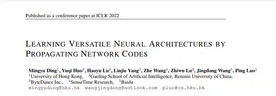 论文题目:Learning Versatile Neural Architectures by Propagating Network Codes