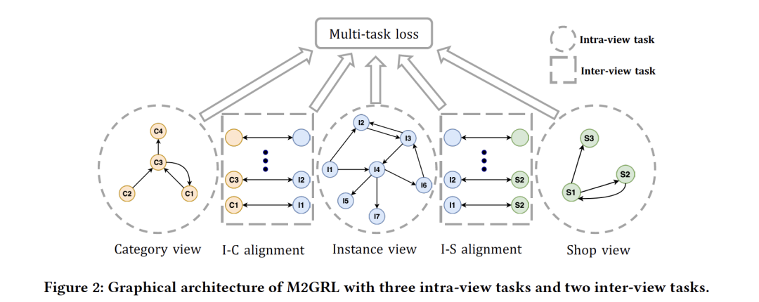 摘要:将图表示学习与多视图数据(边信息)相结合进行推荐是工业上的一种趋势。现有的大多数方法可以归类为多视图表示融合,它们首先构建一个图,然后将多视图数据集成到图中每个节点的单个紧凑表示中。这些方法在工程和算法方面都引起了人们的关注:1)多视图数据在工业中是丰富而且有用的,并且可能超过单个矢量的容量;2)由于多视图数据往往来自不同的分布,可能会引入归纳偏置(inductive bias)。在本文中,我们使用一种多视图表示对齐方法来解决这个问题。特别地,我们提出了一个多任务多视角图表示学习框架(M2GRL)来学习web级推荐系统中的多视角图节点表示。M2GRL为每个单视图数据构造一个图,从多个图中学习多个单独的表示,并执行对齐以建立模型的交叉视图关系。M2GRL选择了一种多任务学习范式来联合学习视图内表示和交叉视图关系。此外,M2GRL在训练过程中利用同方差不确定性自适应地调整任务的损失权重。我们在淘宝部署了M2GRL,并对570亿个实例进行了训练。根据离线指标和在线A/B测试,M2GRL的性能明显优于其他最先进的算法。对淘宝多样性推荐的进一步研究表明,利用M2GRL产生的多种表征是有效的,对于不同侧重点的各种工业推荐任务来说,M2GRL是一个很有前途的方向。