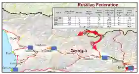 在2008年俄格战争爆发前,俄罗斯部队在北奥塞梯驻扎。这些部队可以按地点转化为战斗力值。例如,在马米森山口附近的俄罗斯部队可以按其组成部件进行统计,如人员、T-72主战坦克、2S3自行火炮和BM-21多管火箭炮系统。