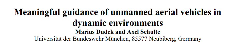 人类飞行员和无人驾驶飞行器在有人-无人团队合作(MUM-T)中共同实现军事目标。在飞机驾驶舱内,飞行员与无人系统之间的互动究竟是怎样的,这仍然是一个未决问题。在大多数方法中,无人平台由飞行员授权,飞行员负责监控衍生行动(Miller 等人,2005 年;Uhrmann 和 Schulte,2012 年;Doherty、Heintz 和 Kvarnström,2013 年)。在现代空战中,战术形势可能在几分钟甚至几秒钟内发生变化,需要飞行员调整计划。当飞行员除了自己的飞机外,还要负责引导多架无人驾驶飞机时,计划修正的时间压力将非常大。当技术进步(如通过决策支持系统和自动任务执行)提高决策时间时,这种压力将进一步加剧。