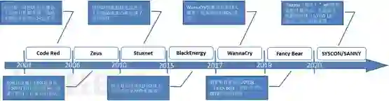 在图2所示为历年来的重大网络安全事件,它们以恶意代码为核心开展网络攻击,从而使得恶意代码具有重要的战略价值。近年来人工智能热潮的再度兴起,对恶意代码的免杀、传播、驻留/持久化、隐蔽通信和精准打击等能力产生了显著的助力效应,并由此引发了新一轮的由人工智能赋能的恶意代码攻防研究,这对传统的恶意代码攻防技术发展将产生重要影响。