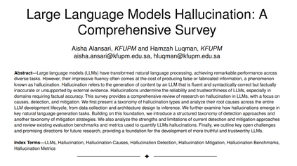 摘要——大型语言模型(Large Language Models, LLMs)已经彻底变革了自然语言处理领域,在多种任务上取得了显著性能。然而,这种令人印象深刻的流畅性往往以生成虚假或捏造的信息为代价,这一现象被称为幻觉(hallucination)。所谓幻觉,是指LLM生成的内容虽然流畅且语法正确,但在事实层面上不准确或缺乏外部证据支撑。幻觉削弱了LLM的可靠性与可信度,尤其在那些对事实准确性要求较高的应用领域中影响尤为严重。 本综述系统梳理了LLM幻觉相关研究,重点关注其成因、检测与缓解。我们首先提出了幻觉类型的分类体系,并从数据收集、模型架构设计到推理阶段,分析了幻觉在LLM全生命周期中的根本成因。接着,我们探讨了幻觉在关键自然语言生成任务中的表现机制。在此基础上,我们分别构建了幻觉检测方法与幻觉缓解策略的系统分类框架,并分析了现有方法的优势与局限。同时,我们回顾了用于量化LLM幻觉的评测基准与指标体系。最后,我们总结了当前研究的主要挑战,并展望了未来可能的研究方向,为构建更加真实、可信的大语言模型提供理论与方法基础。 关键词——大语言模型;幻觉;幻觉成因;幻觉检测;幻觉缓解;幻觉基准;幻觉指标
