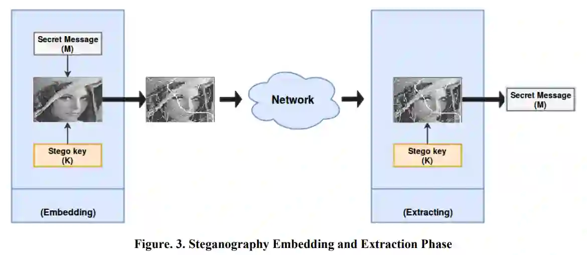 密码学的方法旨在防止对加密数据传输的窃听。密码学背后的想法是隐藏数字数据。密码学来自希腊语stegano,意思是 "覆盖",和graphy,意思是 "书写"。因此,这两个词已成为 "覆盖式写作 "的同义词[4]。使用私钥,它探索了不同的嵌入方法。秘密信息是赋予隐藏内容的名称,而覆盖文件是赋予保存秘密文件的容器的名称。任何种类的多媒体元素,包括视频、音乐、照片和文本,都可以被用作封面[5]。