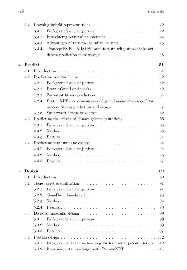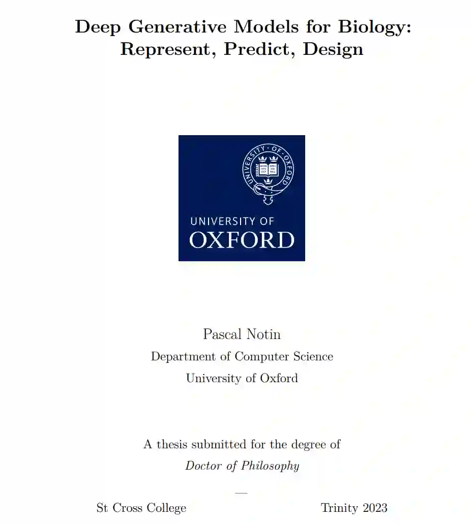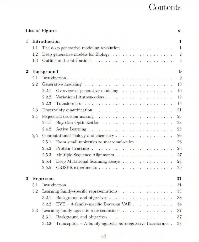 在这篇论文中,我们开发了几种由计算生物学中关键问题所驱动的深度生成建模框架。鉴于这一努力的跨学科性质,我们首先提供了关于生成建模、不确定性量化、顺序决策制定,以及生物学和化学中重要概念的全面背景,以便彻底理解我们的工作。接着,我们深入探讨我们贡献的核心,围绕三个章节进行构建。第一章介绍了学习生物序列表示的方法,为后续分析打下了基础。第二章展示了如何利用这些表示来预测生物分子的复杂属性,重点关注三个具体应用:蛋白质适应性预测、遗传变异对人类疾病风险的影响,以及病毒免疫逃逸。最后,第三章致力于设计新型生物分子的方法,包括药物靶点识别、从头分子优化和蛋白质工程。