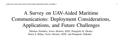 在过去的几十年里,无线网络一直在向支持用户服务发展,这些服务位于城市环境中,而第四代和第五代移动通信(4G和5G)特别强调移动用户和物联网(IoT)设备[1]-[4]的共存。不幸的是,大多数网络架构和通信技术都是为陆基通信而设计的,而海上领域在这场革命中被很大程度上忽视了。因此,它主要基于卫星部分,具有已知的高延迟和低数据速率[5]问题。考虑到绝大多数贸易依赖海上运输,而对广泛的海上活动,如海洋自然资源勘探和污染监测的兴趣急剧增加,有必要彻底转向海上通信。在此背景下,无人机的兴起及其与无线网络的融合为实现海上[7]-[9]宽带覆盖提供了一种可行的手段。无人机能够根据应用的QoS (Quality-of-Service)要求,灵活地提供无线电资源,实现分布式自主操作,保证高可靠性和低时延。
