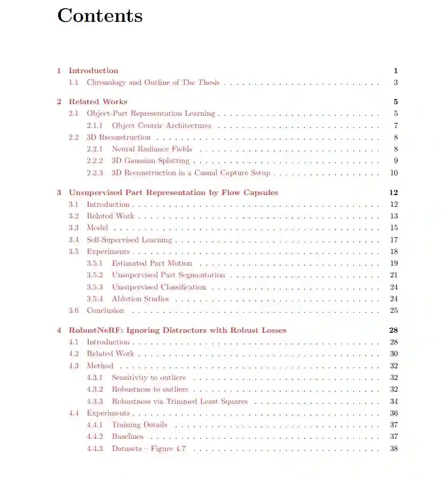 作为人类,我们天生就有一种关于场景或图片中物体的概念。即使没有颜色或纹理,我们也能识别物体的存在。我们对物体的感知通常不是原子式的,有时是任务依赖的。我们甚至可以毫不犹豫地识别和计数未见过类别的物体实例。心理学研究提到过格式塔法则,作为我们在没有监督的情况下寻找物体的线索。拥有正确的基础,使机器能够在没有监督的情况下识别场景中的物体,可以减少对手工标注训练数据集的依赖。因此,模型会具有更好的领域外泛化能力。此外,它可以通过限制人与训练数据集的互动,绕过训练数据集固有的偏差。根据设计选择,模型可能会变得更加可靠、值得信赖和可解释。本文讨论了神经网络架构设计和训练方法,使其能够在没有监督的情况下将图像分解为感兴趣的物体。二维无监督物体分割的主要挑战是区分感兴趣的前景物体和背景。FlowCapsules 使用运动作为二维场景中感兴趣物体的线索。本文的最后部分集中在三维应用中,目标是从输入图像中检测和去除感兴趣的物体。在这些任务中,我们利用三维场景的几何一致性来检测不一致的动态物体。我们的瞬态物体掩码随后用于设计鲁棒的优化内核,以改进随意拍摄设置下的三维建模。本文的目标之一是展示计算机视觉中无监督物体方法的优点。此外,我们提出了在不需要监督的情况下定义感兴趣物体或前景物体的可能方向。我们的希望是激励并激发社区进一步探索图像理解任务中的显式物体表示。