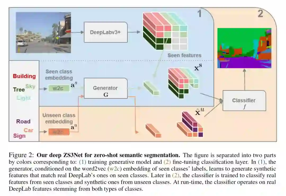 摘要:语义分割模型在扩展到大量对象类别的能力上受到限制。在本文中,我们介绍了零样本语义分割的新任务:用零训练实例学习从未见过的对象类别的像素级分类器。为此,我们提出了一个新的架构,ZS3Net,结合了一个深度的视觉分割模型和一种从语义词嵌入生成视觉表示的方法。通过这种方式,ZS3Net解决了在测试时可见和不可见的类别都面临的像素分类任务(所谓的“generalized” zero-shot 分类)。通过依赖于不可见类的像素的自动伪标记的自训练步骤,可以进一步提高性能。在两个标准的细分数据集,Pascal-VOC和Pascal-Context,我们提出了zero-shot基准和设置竞争的baseline。对于Pascal-Context数据集中的复杂场景,我们通过使用图形-上下文编码来扩展我们的方法,以充分利用来自类分割图的空间上下文先验。